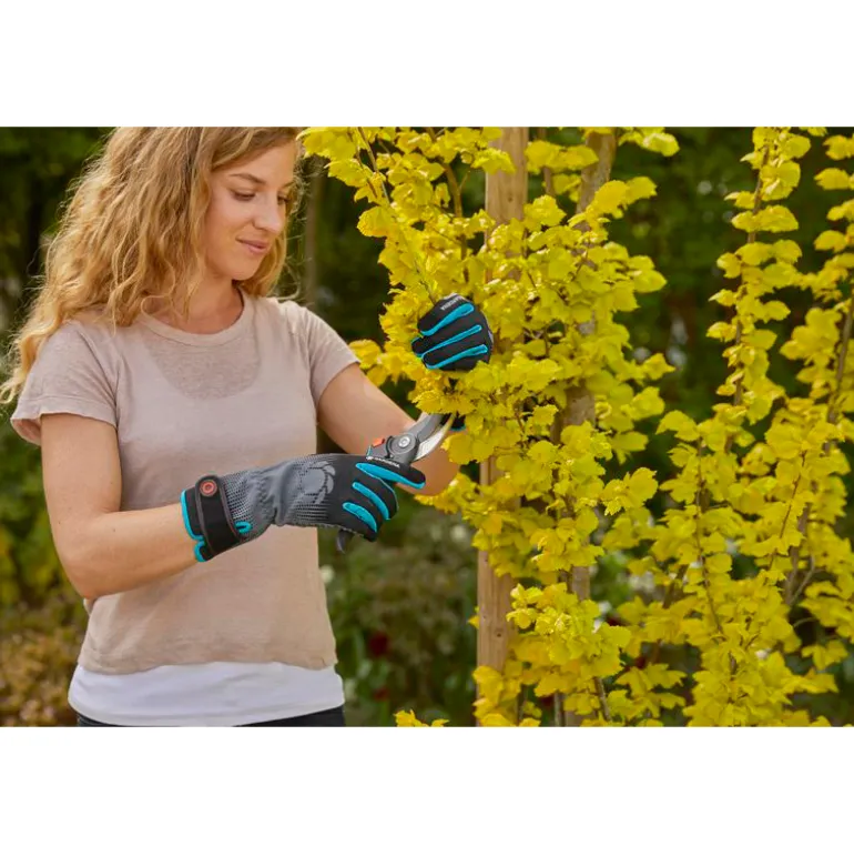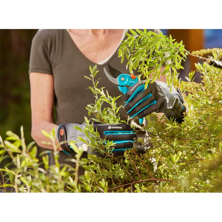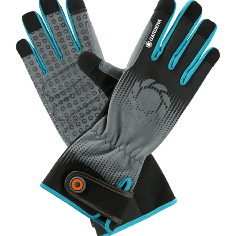 Kämmenosassa on silikonipinnoite, minkä ansiosta saat puutarhasaksista erittäin pitävän otteen. Peukalon ja etusormen kohdalla on Mobile Touch -ominaisuus, joten voit käyttää halutetessasi älypuhelinta käsineitä riisumatta käsineitä. Älypuhelimen kanssa yhteensopiville pensaskäsineille on myönnetty Öko-Tex® 100 -sertifiointi, mikä tarkoittaa, että käsineen tekstiilit eivät sisällä haitallisia aineita.