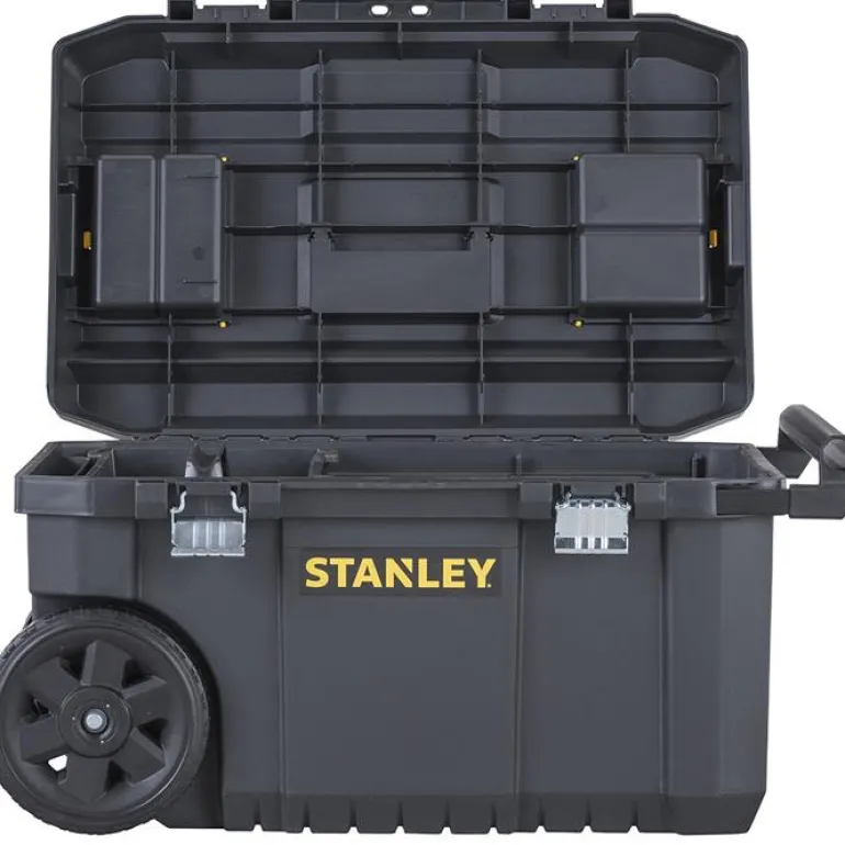 Iso työkalulaatikko, tilavuus 50 l. Kestävä teleskooppikahva, jonka avulla työkalulaatikon liikuttaminen on helppoa. Irrotettava lokero pienten osien ja tarvikkeiden säilyttämiseen. Geometriset metallikiinnikkeet. Lukitussilmukka parantaa turvallisuutta. 7″:n pyörät helpottavat siirtämistä. Integroitu V-ura helpottaa puun ja putkien sahaamista. Irrotettava tarjotin helpottaa työkalujen ja tarvikkeiden pitämistä järjestyksessä. Sopii hyvin päivittäiseen käyttöön.