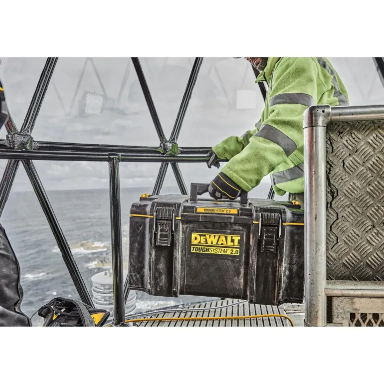 Työkalupakki/työkalulaatikko ToughSystem 2.0 DS300, jossa patentoidut automaattiset pinoamissalvat moduulien yhteenliitäntää varten, mikä helpottaa käsittelyä ja käyttöä – myös yhdellä kädellä. Kaksiosaiset metalliset salvat edessä lisäävät kestävyyttä. IP65-luokiteltu pölyn- ja vedenpitäväksi, kuormituskapasiteetti 50 kg. Työkalulaatikossa on irrotettava työkalutarjotin, joka helpottaa järjestelyä. Yhteensopiva kaikkien ToughSystem-tuotteiden kanssa.