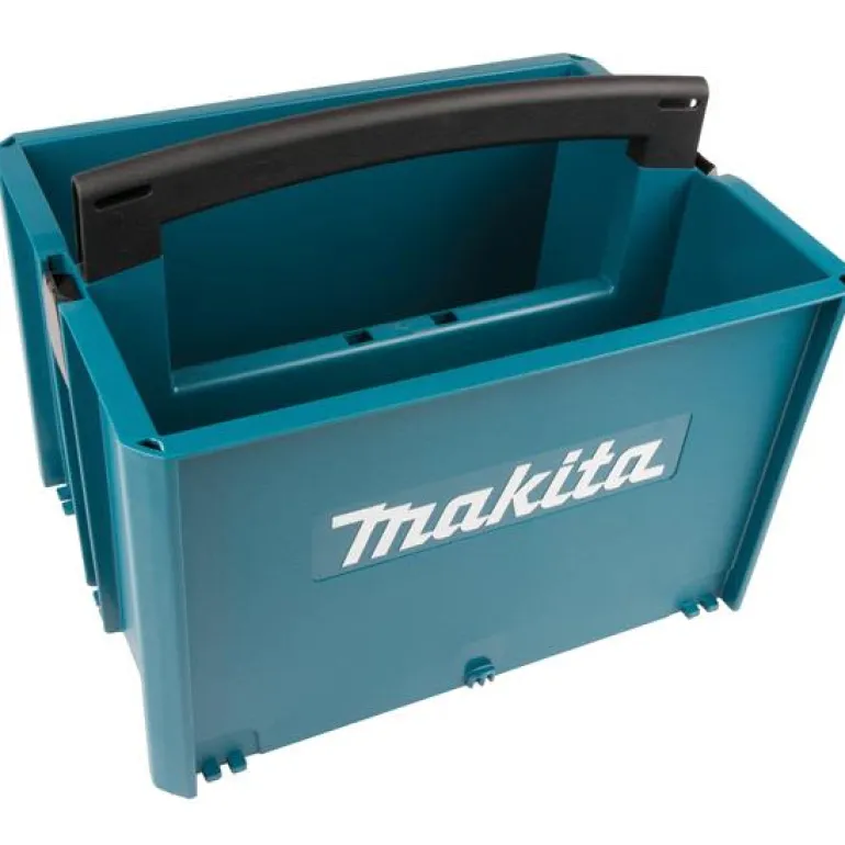 Pieni työkalulaatikko, jossa on suuri kahva. Avoimen mallin ansiosta kaikki osat helposti saatavilla. Laukut voidaan pinota ja kiinnittää toisiinsa niissä olevien liittimien avulla.