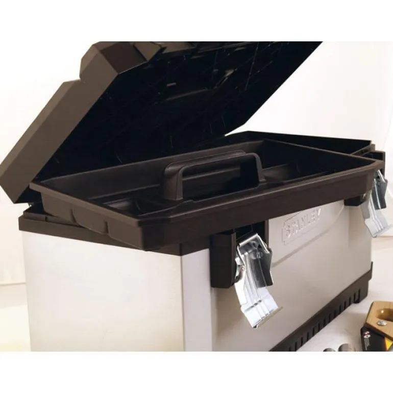 Työkalulaatikko, 66,2 x 29,3 x 29,5 cm. Muovin ja kestävän metallin yhdistelmä suojaa äärimmäisen tehokkaasti laukun sisällä säilytettäviä varusteita. Helppo kantaa mukana raskaat varusteet. Tyylikäs kohopainettu logo. Innovatiivinen pystysäilytysyksikkö tehostaa varusteiden järjestelyä. Kaksoismateriaalista valmistettu ergonominen kahva sekä suuret ruostumattomat metallikiinnikkeet ja lukitussilmukka takaavat turvallisen säilytyksen. Kannettava kaukalo sopii täydellisesti työkalujen ja pienten osien kuljettamiseen mukana ja vie vain vähän tilaa työkalulaatikossa. Sopii myös putkien ja puun käsittelyyn. Korkea laatikko tuo lisää korkeutta säilytystilaan.