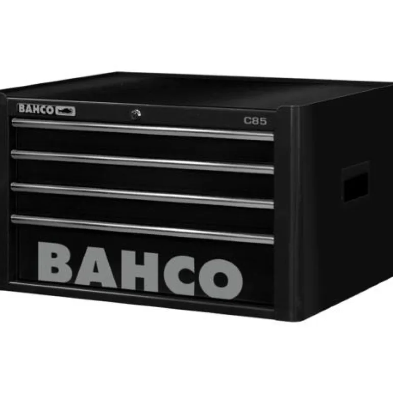 Musta työkalulaatikosto, jossa 4 laatikkoa. Lock & Go -lukitusjärjestelmä estää vetolaatikoita avautumasta.