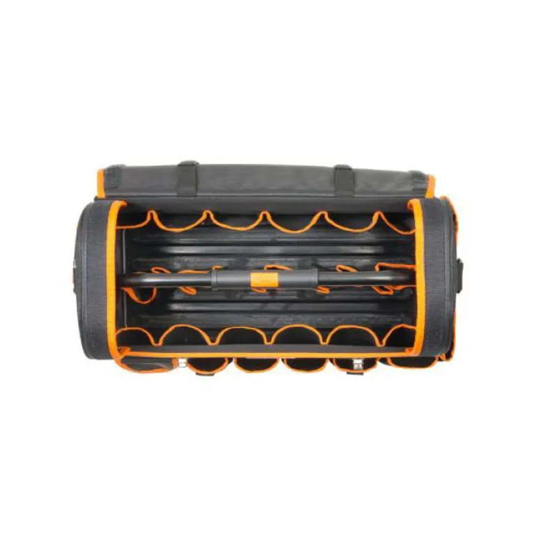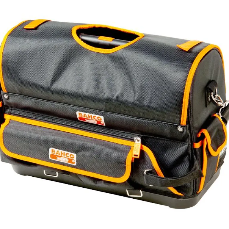 Käytännöllinen työkalulaukku, jossa on sisä- ja ulkolokerot, kahva sekä olkahihna. Mitat: 470x230x355 mm.