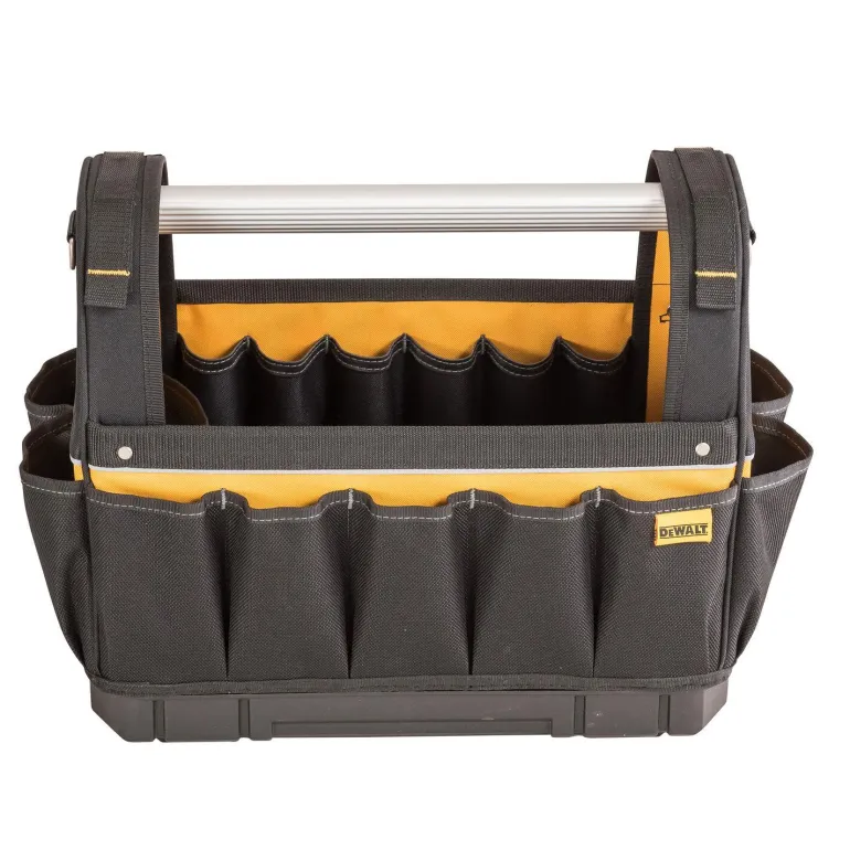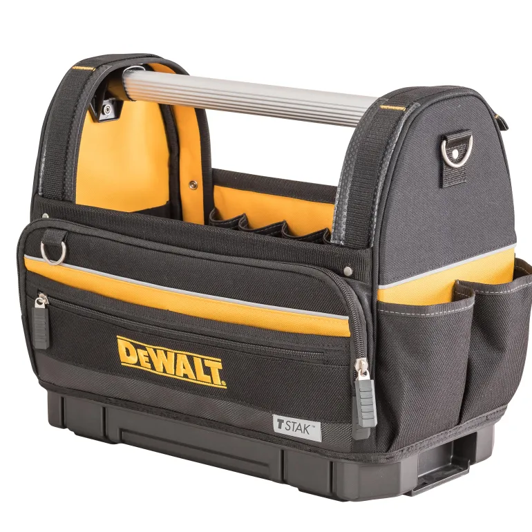 Pehmeä ja avoin työkalulaukku, TSTAK, ruiskuvalettu muovipohja, joka suojaa märältä lattialta tai maalta. Valmistettu vahvasta ja kestävästä polyesterikankaasta. Alumiininen kahva helpottaa kuljetusta ja tekee tuotteesta pitkäikäisen. Teräsvahvisteiset niitit lisäävät lujuutta. Kuormituskapasiteetti 30 kg. Yhteensopiva muiden TSTAK-moduulien kanssa.