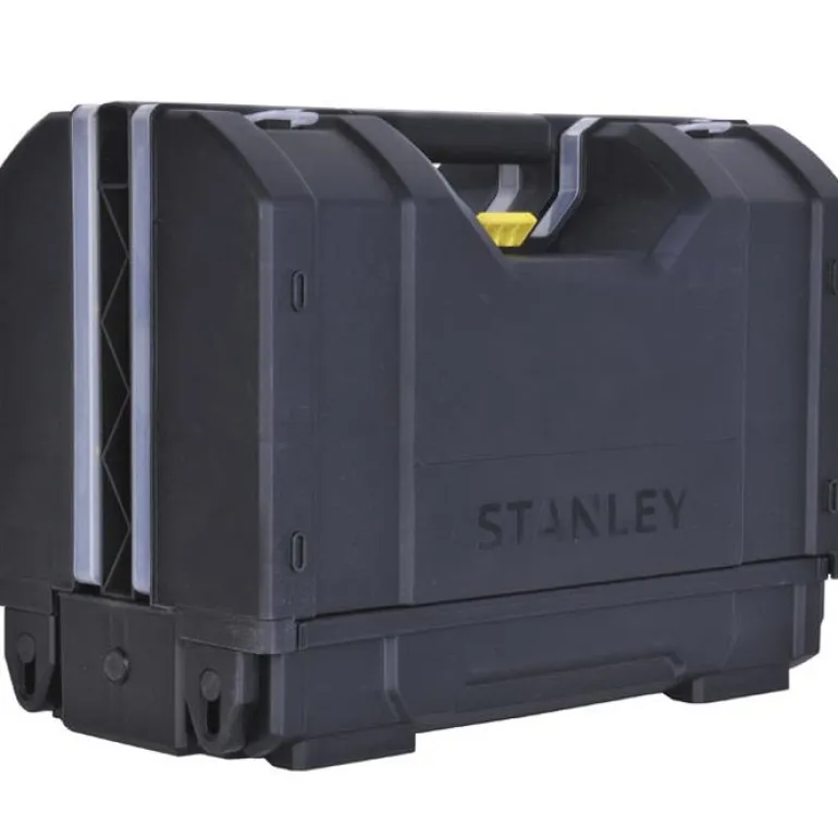 Työkalulaukku. 3 in 1 -kokoonpano, käsityökaluille, sähkötyökaluille ja tarvikkeille – 3-in-1. Kun laukku on avattu kokonaan, kaikki kolme säilytysosiota ovat käytettävissä samanaikaisesti. Sisäänrakennettu kaukalo suurten käsityökalujen säilytykseen.