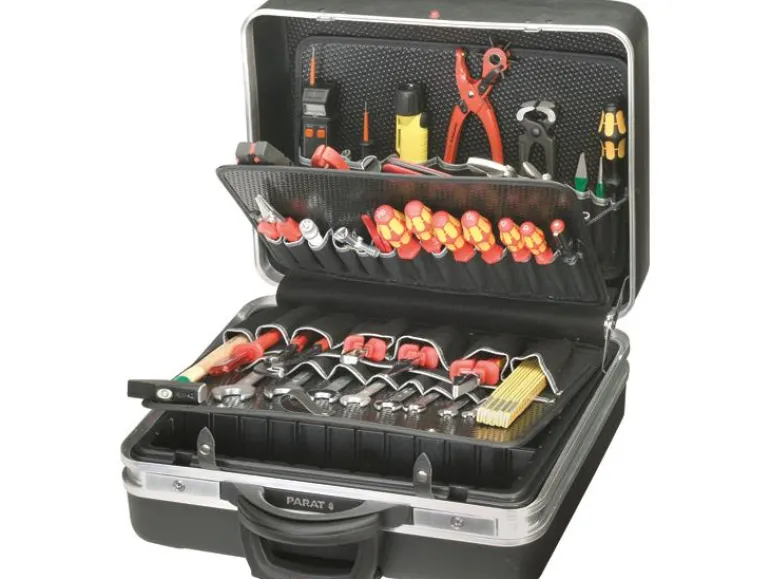 Mustaa ABS-muovia, vahvistettu kehys. Pyörät ja teleskooppikahva. Kannessa asiakirjalokero. Yksi työkalulevy 25 työkalulle, 1 turvalokero, 1 työkalulevy 10 työkalulle, 1 suojalevy 15 työkalulle, 1 jaettava pohjalokero. Enimmäiskuormitus 40 kg. Toimitetaan ilman työkaluja. Lentokuljetuksen kestävä.
