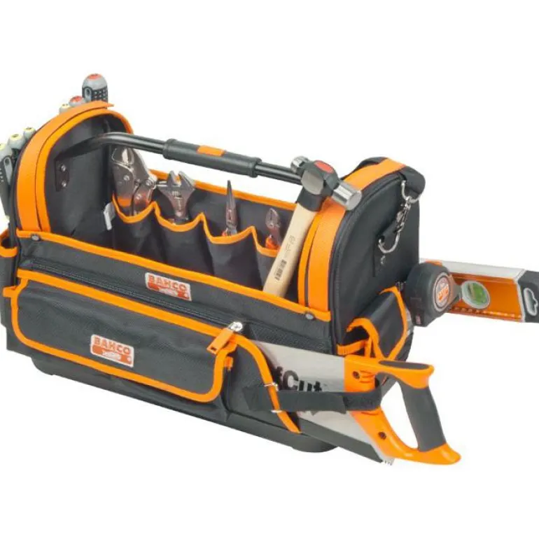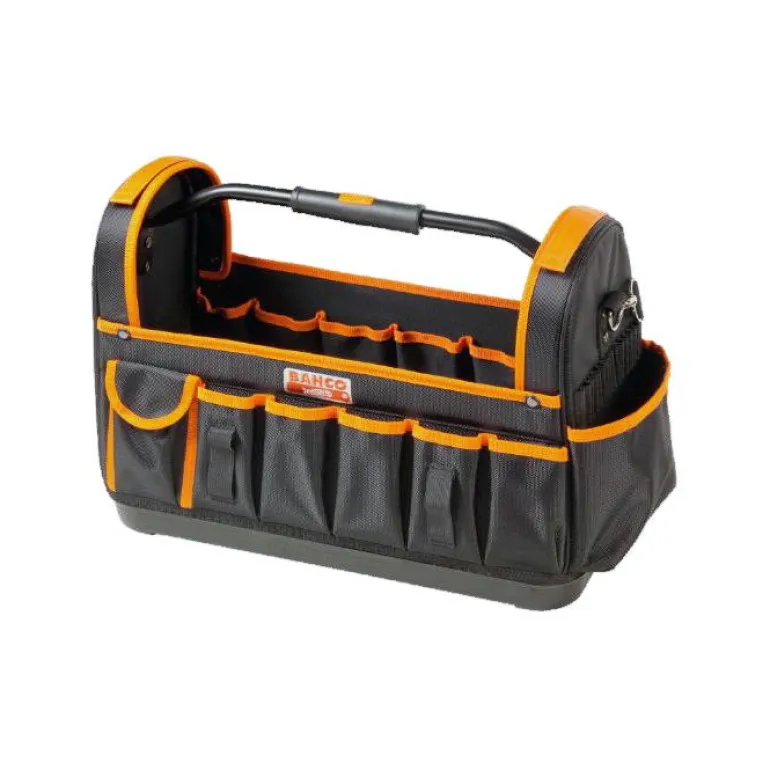 Käytännöllinen avomallinen työkalulaukku, jossa on sisä- ja ulkolokerot, ergonominen kahva sekä olkahihna. Mitat: 470x230x355 mm.