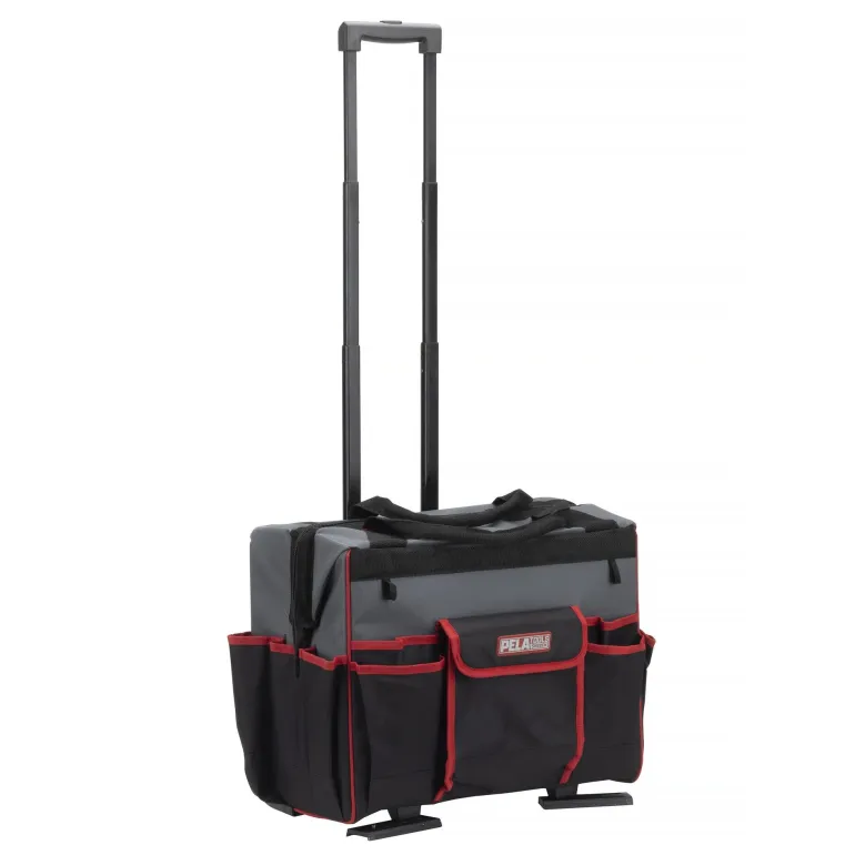 Pela 543531 on pyörillä ja säädettävällä teleskooppikahvalla varustettu työkalulaukku työkalujen ja koneiden turvalliseen säilytykseen ja kätevään kuljettamiseen. Valmistettu kulutusta kestävästä kankaasta, joka kestää vaativaakin käyttöä. Reilun kokoiset kuvioidut pyörät, jotka rullaavat hyvin useimmilla pinnoilla.