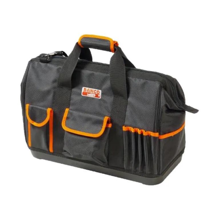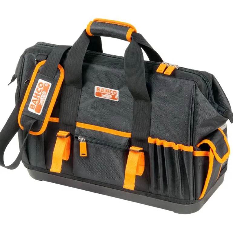 Käytännöllinen työkalulaukku, jossa on sisä- ja ulkolokerot, kahva sekä olkahihna. Mitat: 470x230x370 mm.