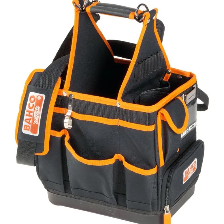 Käytännöllinen työkalulaukku, jossa on sisä- ja ulkolokerot, kahva sekä olkahihna. Mitat: 285x290x285 mm.