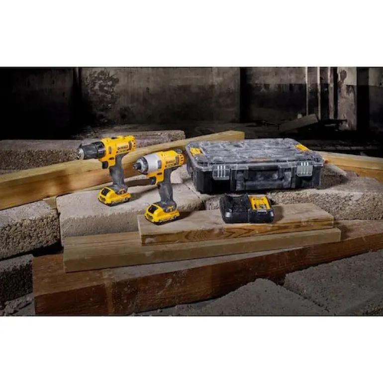 12V:n DEWALT-sarja, joka sisältää ruuvinvääntimen DCD710 iskuruuvinvääntimen DCF815. Mukana 2 kpl 12V:n ja 2,0 Ah:n paristoja, laturi ja laukku.
