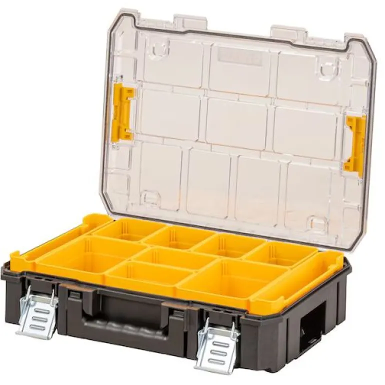 TSTAK® 3-in-1 -työkalupakki/työkalulaatikko 7″ pyörillä, joka tarjoaa mahdollisuuden kuljettaa raskaita työkaluja helpommin pidempiäkin matkoja. Teleskooppikahva helpottaa käsittelyä ja kuljettamista. Kahva voidaan myös taittaa sisään työkalulaatikkoon säilytyksen helpottamiseksi. Avoin säilytyslaatikko – nopea ja helppo pääsy työkaluihin ja lisävarusteisiin. Pitkä alumiininen kahva, joka takaa kestävyyden. Lokerikko (ei IP-luokiteltu) lisävarusteiden ja komponenttien helppoon säilytykseen. DEWALT TRACKER – kiinnityspiste sisäänrakennettu TSTAK-laatikoihin DEWALT Trackerin asentamiseen, mikä mahdollistaa seuraamisen DEWALT Tool Connectin avulla. Kestävät metalliset salvat vakautta ja kestävyyttä varten. Metalliset sivusalvat mahdollistavat TSTAK-moduulien liittämisen yhteen. IP54-luokitus: suojaa työkaluja vedeltä ja pölyltä. Kapasiteetti pyörällinen työkalupakki DWST83347-1 50 kg/36 l, keskimmäinen lokerikko/työkalulaatikko DWST82968-1 20 kg/7,8 l ja ylimmäinen työkalupakki DWST83344-1 30 kg/11 l. Lukittava riippulukolla (ei sisälly toimitukseen) lisäsuojaksi (lukuun ottamatta lokerikko). 3 osaa. Kaikki osat IP54.