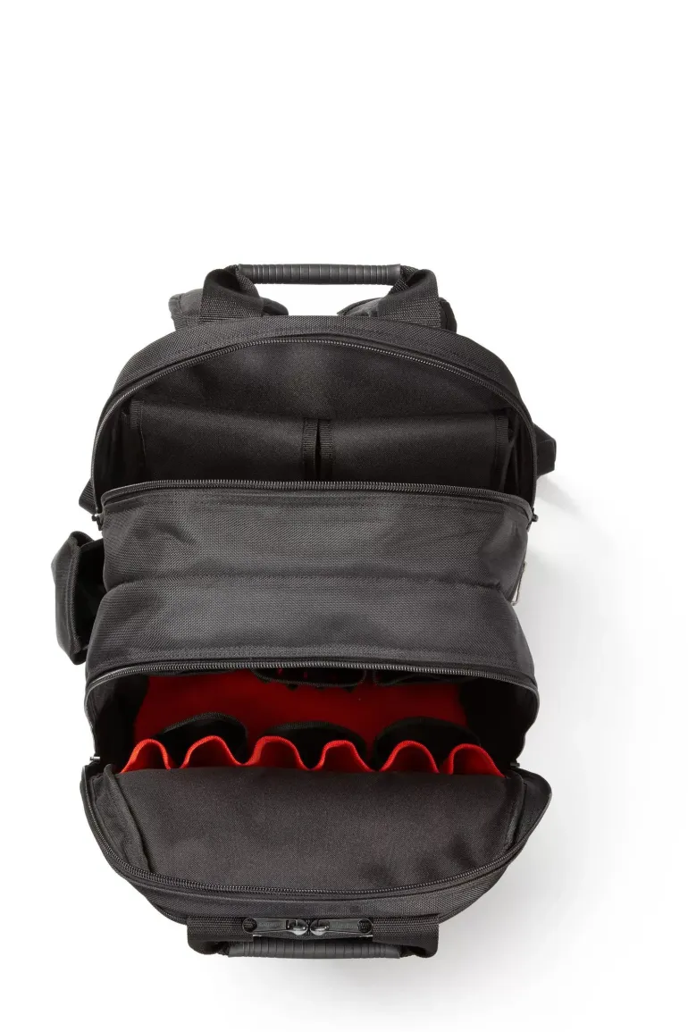Selkää lähinnä olevassa lokerossa on pehmustettu tasku kannettavalle tietokoneelle, tableteille ja asiakirjoille. Siihen mahtuu enintään 15 tuuman kannettava tietokone. Siinä on keskikokoisia läpällisiä ja vetoketjulla suljettavia taskuja herkkien varusteiden turvalliseen säilytykseen, läpinäkyviä taskuja, joiden avulla löydät helposti etsimäsi, ja ulkoinen vesipullotasku laukun vasemmalla puolella. Repussa on myös ulkoinen rullamitan pidike, kynänpidikkeitä, avainpidike ja joustavia lenkkejä pienemmille työkaluille, kuten ruuvimeisseleille.