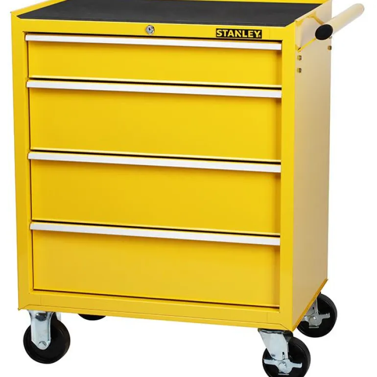 Pyörillä varustettu 27″:n työkalukaappi 2 kiinteää ja 2 kääntyvää pyörää, täysi jarrukapasiteetti, kromipinnoite. Pyörien kapasiteetti: 272 kg Tukevat laatikot, laadukas järjestelmä, paranneltu kahva ja lukitusmekanismi.