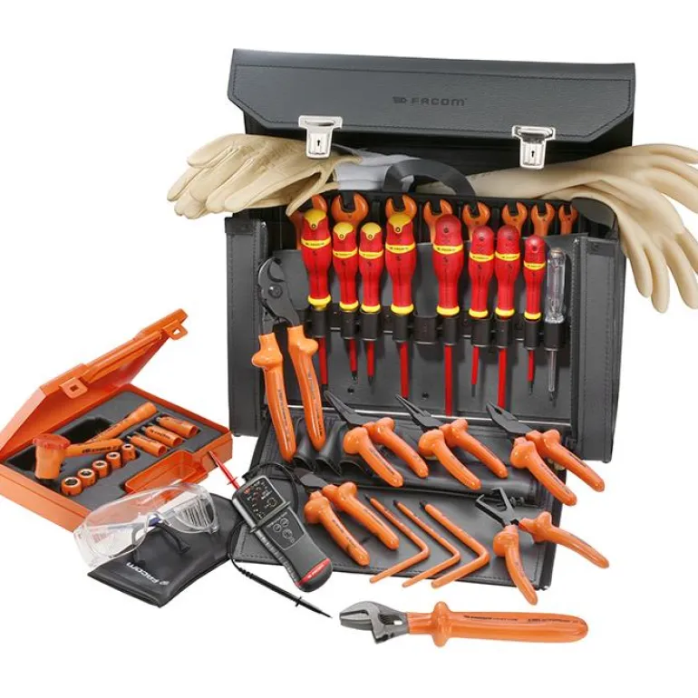 Facom 2187C.VSE on 32-osainen työkalusarja eristettyjä työkaluja, joiden jännitteenkesto on 1000 V.