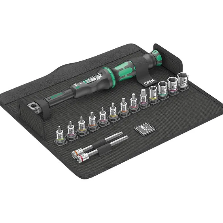 Wera Bicycle Set Torque 1 on 16-osainen ruuvaustyökalusarja, joka sisältää momenttiavaimen ja hylsyt. Työkalusarja on suunniteltu erityisesti polkupyörien korjaukseen. Työkalusarja varmistaa, että ruuvauksessa käytetään vain sallittuja vääntömomentteja suojaten siten herkkiä osia. Erittäin vankka rakenne ja korkea tarkkuus. Arvojen helppo säätö ja varmistaminen. Työkalu napsahtaa kuultavasti ja tuntuvasti kunkin momenttiarvon kohdalla. Hylsyissä on värikoodausjärjestelmä kokojen mukaan – tarvittavan työkalun helppoon ja nopeaan löytämiseen. Käytännöllinen ja kestävä tekstiililaatikko.