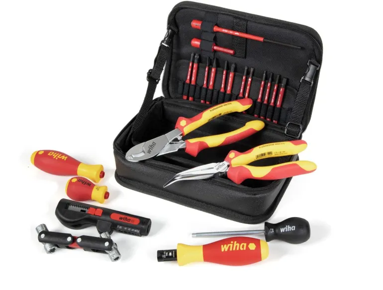 Latauspisteen asennustyökalusarja patentoidulla muotoilulla. Kestävä monitoimilaukku, jossa sähköasentajan työkalut ovat hyvässä järjestyksessä, soveltuu erinomaisesti liikkuviin töihin. Muotoilultaan palkittua Wihan laukkua voi käyttää monipuolisesti eri tarkoituksiin. Avattuna laukku toimii työpenkkitelineenä, josta työkalut saa helposti käyttöön. Lisäksi sen voi ripustaa lenkin avulla seinälle ja pohjaosan voi irrottaa. Työkalusarjan vaihtokärkijärjestelmä säästää optimaalisesti tilaa. Wiha slimTechnology -muotoilun ansiosta sarjan slimBit-kärjissä on jopa 33 % tavanomaista kapeampi terä, jonka ansiosta niillä pääsee vaivattomasti käsiksi myös syvällä oleviin ruuvi- ja jousielementteihin. Erittäin lyhyen Stubby-kädensijan avulla myös ahtaissa paikoissa oleviin ruuveihin pääsee hyvin käsiksi. Sarjan sisältöä voidaan käyttää monipuolisesti, joten myös jakokaapin parissa tehtäviä töitä varten löytyy aina sopiva työkalu. Sarjan jokaiselle työkalulle tehdään kansainvälisen standardin IEC 60900 mukainen kappaletarkastus, ja niillä voi työskennellä turvallisesti jännitteisten osien parissa jännitteeseen 1 000 V AC asti.