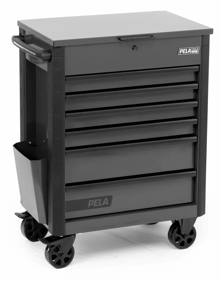 PELA 546536 on harmaa/musta työkaluvaunu ylälaatikolla, joka on valmistettu tukevasta teräslevystä. Tyylikäs harmaaksi lakattu pinta mustalla sivukahvalla. Ylälaatikon kansi on kaasujousitettu ja sen on oltava auki, jotta muut ulosvedettävät laatikot voidaan avata. Sekä laatikot että ylälaatikko ovat lukittavissa avaimella. Puskurit jokaisessa kulmassa suojaavat sekä vaunua että ympäristöä. Vaunu on varustettu 4 pyörällä, joista kaksi on kiinteitä ja kaksi kääntyviä sekä lukittavia. Vaunussa on lisäksi sivulla säilytystasku asiakirjoille ja käytännöllinen paperipyyhepidike.