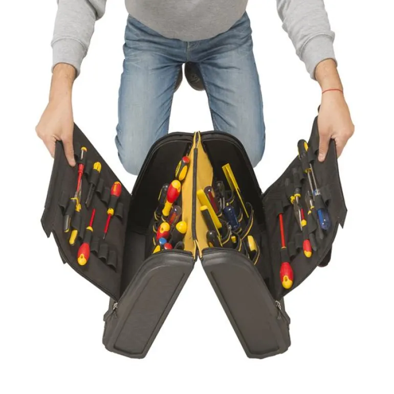 Työkaluvaunu, jossa erillinen lokero mekaanisille työkaluille ja hylsyille. Työkalut ovat hyvin näkyvillä molemmilta sivuilta. Vahvisteena toimivat muovisivut suojaavat sisältöä. Tehokas tilanjakaja mahdollistaa työkalujen turvallisen ja vaivattoman kuljetuksen. Sopii monenlaisille alustoille: työpenkille, lattialle tai tikkaille.