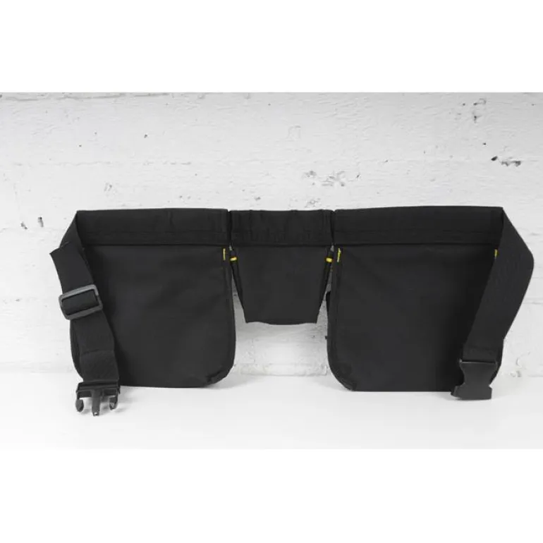 Kaksoistaskullinen työkaluvyö. 600 x 600 denierin kankaasta valmistettu – kestävä ja tukeva. Pidä työkalut lähellä työn aikana. Ergonominen pehmuste selässä parantaa turvallisuutta ja mukavuutta. Kiinteä metallisilmukka vasaralle. Erikokoisia taskuja ja silmukoita parantamaan järjestystä. Taskujen koko ja rakenne tekevät niistä erittäin helppokäyttöiset. Mittanauhatasku helpottaa mittaamista.