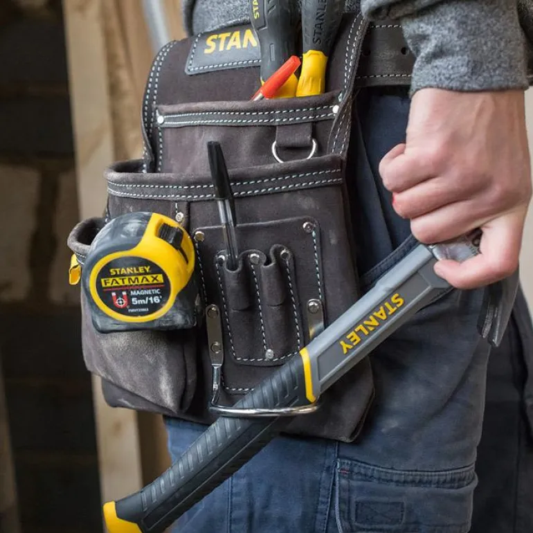 Ammattikäyttöön soveltuva työkaluvyö aitoa korkealaatuista mokkanahkaa. Käytännöllisten taskujen koko ja rakenne on muotoiltu niin, että tarvitsemasi työkalut ovat aina helposti saatavilla. Useita taskuja ja pidikkeitä, joiden avulla saat tarvitsemasi työkalut helposti käyttöösi. Suuri aukko helpottaa vyön säätämistä eri kokoihin. Niittivahvikkeet estävät kulumista hankautuvissa kohdissa. Integroitu metallipidike vasaroille.