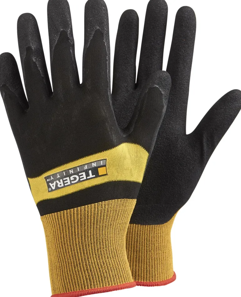 Tegera 8802 Infinity on työkäsine, joka kestää kosketuslämpöä jopa 100 °C:seen saakka, DMF (DMFa) -vapaa. Öljyn- ja rasvankestävä kämmenosa.