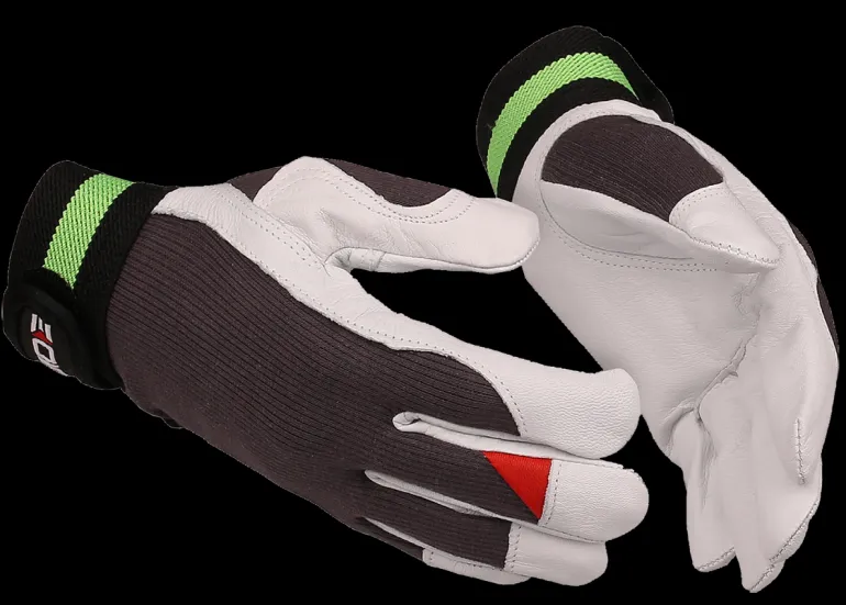 Guide Gloves 44 on joustava ja kulutusta kestävä asennuskäsine, jonka kämmen pehmeää vuohennahkaa ja kämmenselkä puuvillaa. Sopiva yleistöihin. Ranneke on helppo säätää tarranauhalla.