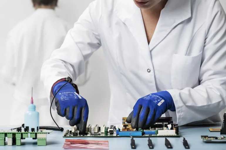 Erittäin ohut ja joustava ESD-käsine, jonka kämmenessä polyuretaanipinnoite. Soveltuva tarkkuustyöhön hyvän sormenpäätuntuman ansiosta.