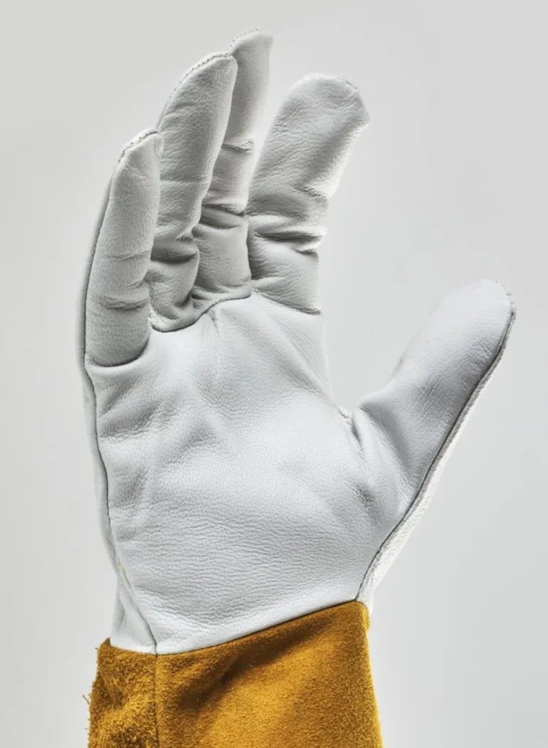 Kestävä kuumuutta kestävä hitsauskäsine (TIG) laadukasta pukin pintanahkaa. Kevlar®-saumat. Hyvä suoja hankausta vastaan. Kestää kosketuslämpöä jopa 100 °C:seen saakka.