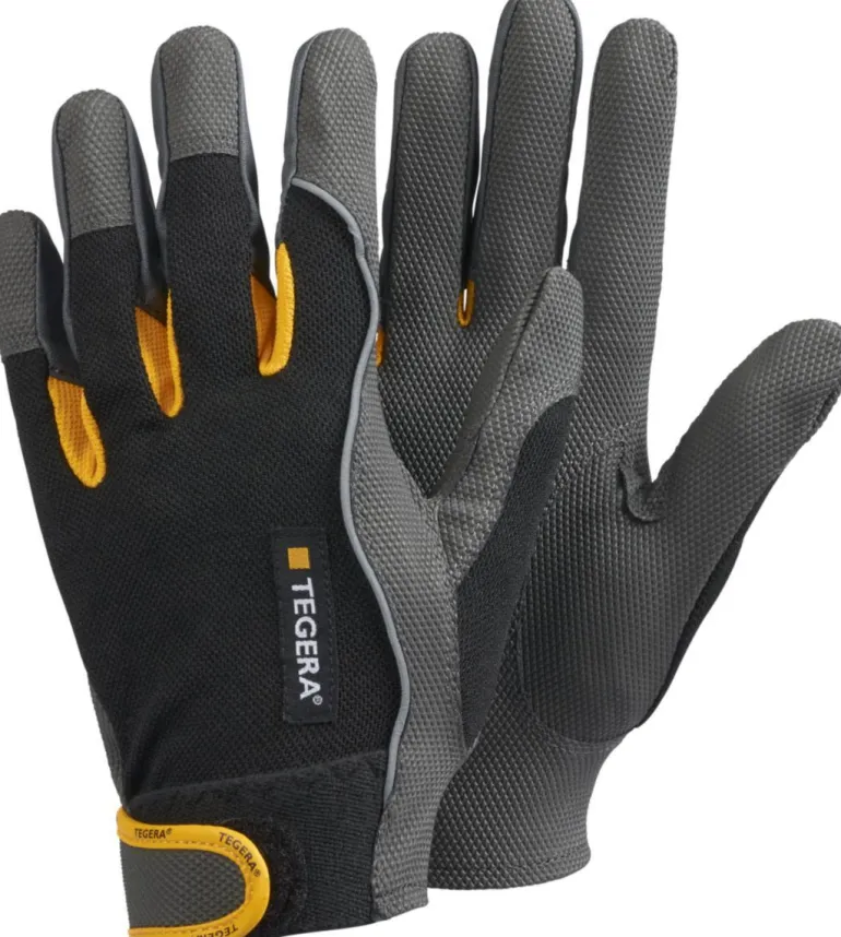 TEGERA® PRO 9120 on ergonominen keinonahkakäsine, jossa vahvikkeet sormenpäissä. Kämmenen Microthan®+-materiaali lisää kestävyyttä, siinä on hyvän pidon mahdollistava kuviointi ja kämmenselän materiaali on nailon. Tarranauhakiinnitys, joka parantaa istuvuutta. Sopii monipuolisesti erilaisiin asennustöihin.