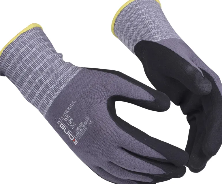 Guide Gloves 577 PP on ohut, kämmenpinnoitettu työkäsine mikrohuokoista nitriiliä, joka antaa erinomaisen kuivapidon ja suojaa kosteudelta. Hyväksytty kosketuslämmön suojaustasolle 1. Öko-Tex-hyväksytty.