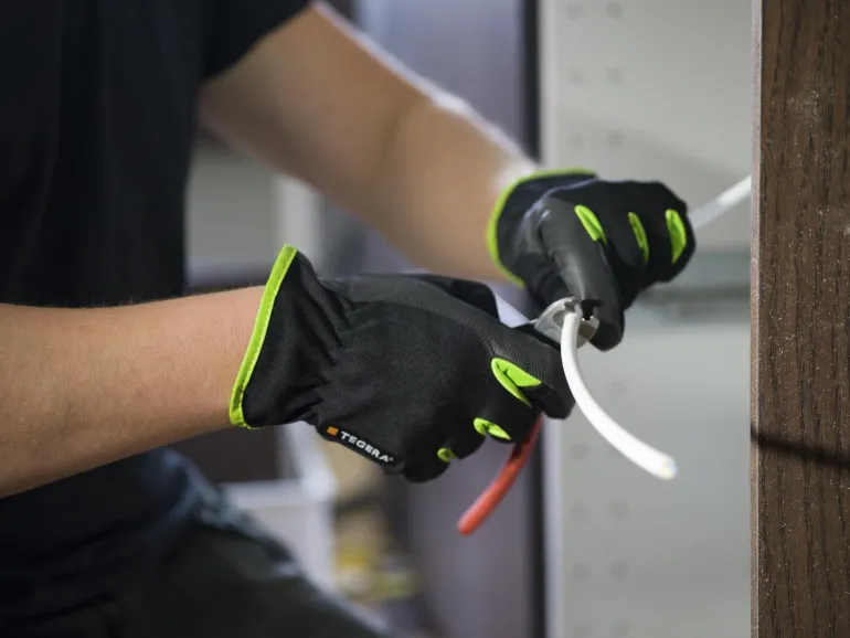 Tegera 515 on vuoriton synteettinen asennuskäsine, jossa vahvike etusormessa. Soveltuva hienomekaanisiin asennustöihin.