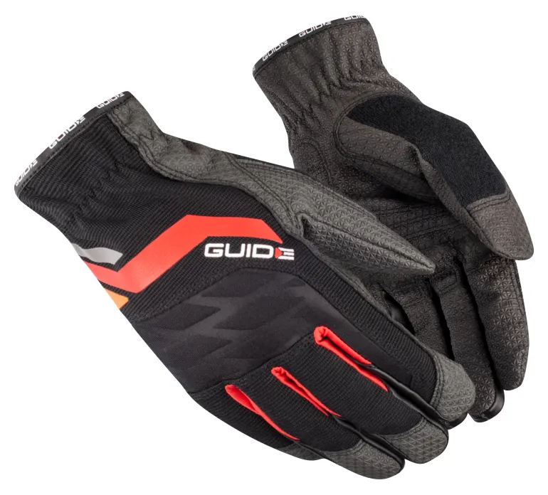 Guide Gloves 5112 on kulutusta kestävä puolivuorillinen käsine Guide GTX -synteettistä nahkaa erittäin hyvällä sormituntumalla ja hyvällä otepidolla. Taivutettu muoto ja neopreenivahvikkeet rystysissä tekevät käsineestä mukavan ja notkean. Pehmustettu kämmen ja resorilla varustettu puolilyhyt ranneke, joka pitää käsineen varmasti kädessä.
