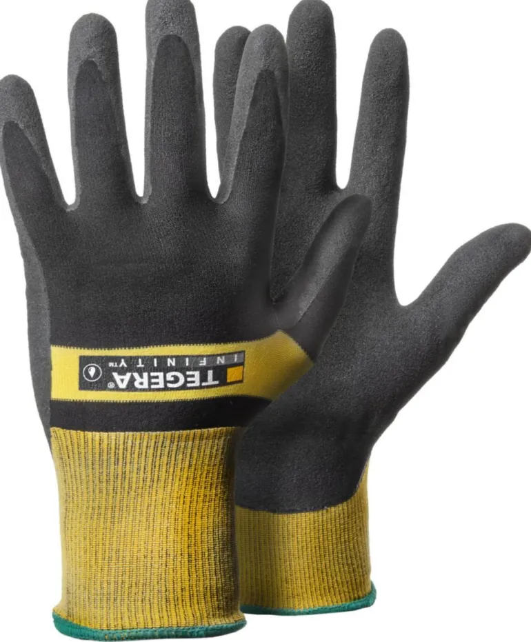 TEGERA® INFINITY 8802 on työkäsine tarkkuustöihin. Ainutlaatuinen tuntuma ja äärimmäinen tuntoherkkyys rasvaisissa ja öljyisissä ympäristöissä. Erittäin kevyt 18 gg neuloksen ansiosta. Kaksinkertainen nitriilipinnoite. Mikrovaahtopinnoite kämmenessä takaa hyvän pidon. Kestää kosketuslämpöä jopa 100 °C:seen saakka. Anatomisesti muotoiltu, Dermatest- ja Öko-Tex-sertifioitu.