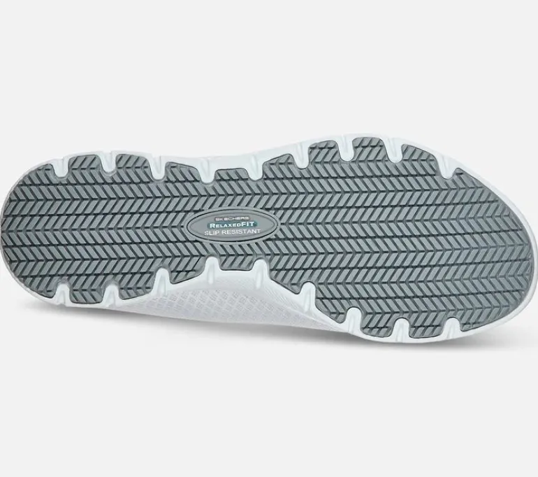 Skechers Work Relaxed Fit on liukastumisenestolla varustettu naisten työkenkä, jossa on lisätilaa jalan etuosassa. Kengän päällysosassa on hengittävää mesh-kangasta. Kengässä on lisäksi pehmeä ja hengittävä Memory Foam -sisäpohja. Ulkopohja on liukutestattu niin, että se täyttää tiukimmat turvallisuusvaatimukset.