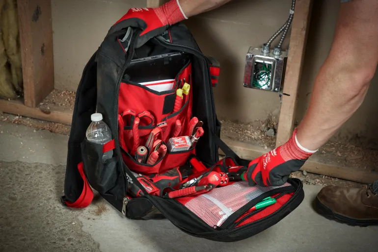 Milwaukee 4932464834 on reppu, jossa on yhteensä 22 taskua. Valmistettu kestävästä materiaalista, vahvistettu pohja. Reppu on helppo kiinnittää vaunuun ja siinä on mukavuutta lisäävät, säädettävät valjaat.