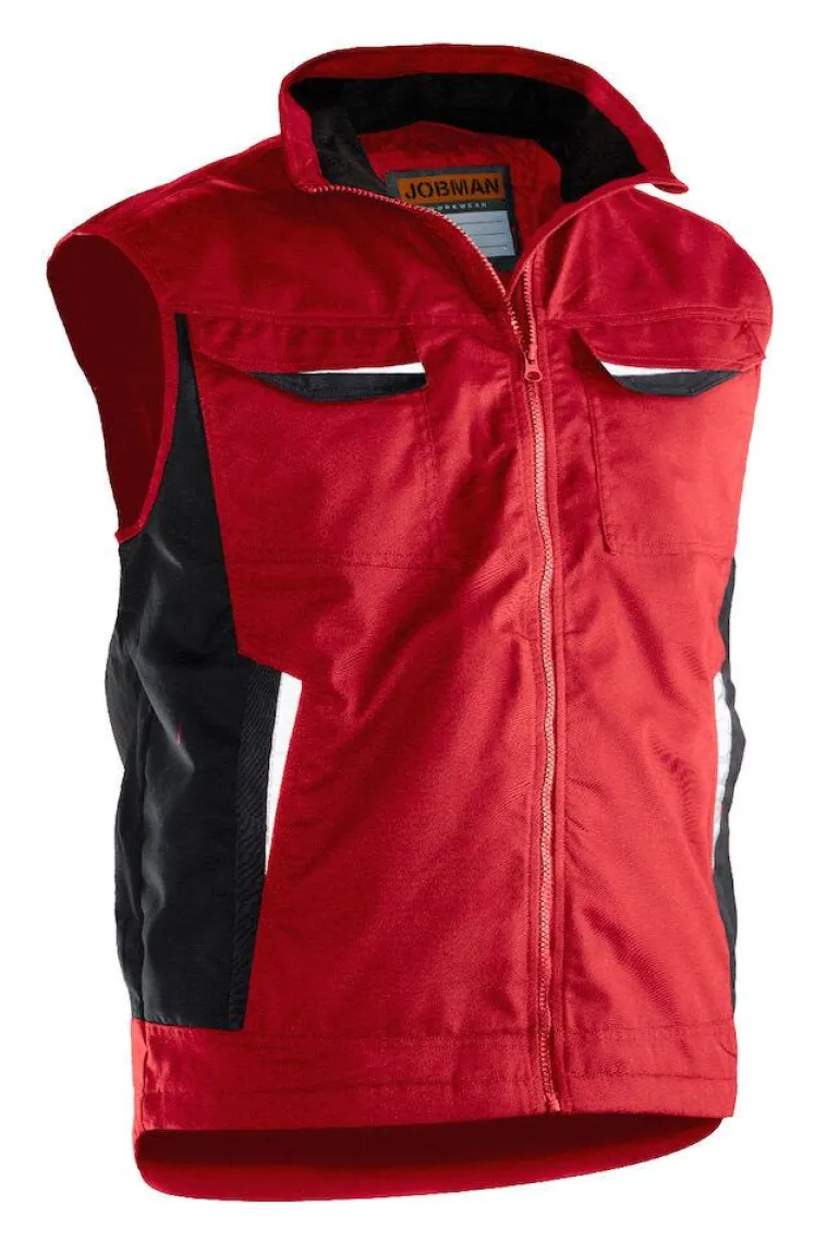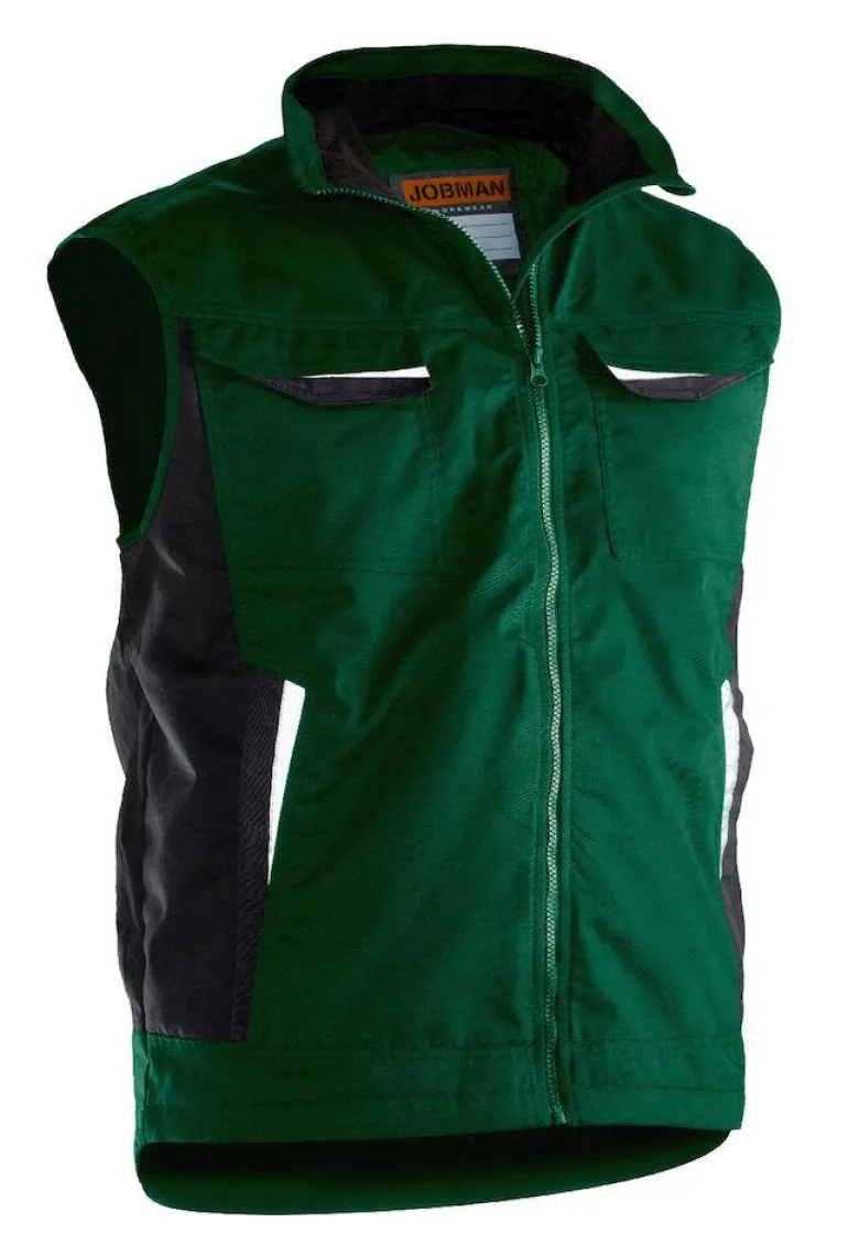 Jobman 7517 on tikkivuorattu työliivi helppohoitoista polyesteriä/puuvillaa. Kaksi rintataskua tarranauhakiinnityksellä, joista vasemmassa rintataskussa D-rengas henkilökorttia varten.