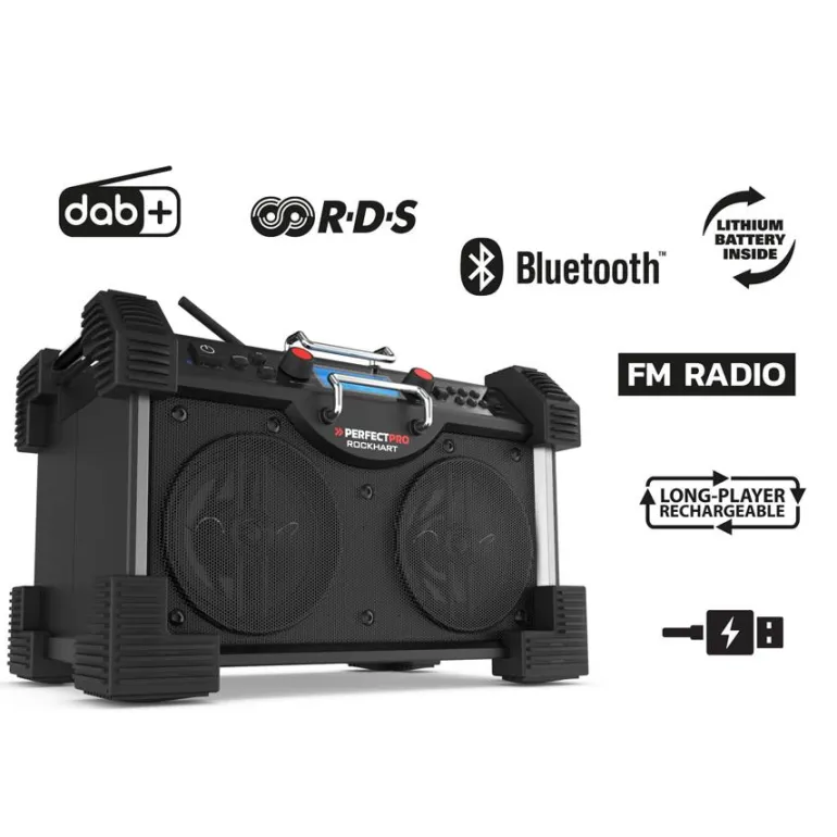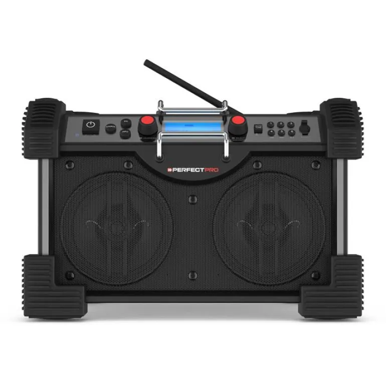 Suuri ja tehokas työmaaradio bluetoothilla. Musiikin langattomaan suoratoistoon älypuhelimesta tai tabletilta. Ladattava sisäänrakennetun litiumakun avulla. Pölyn- ja iskunkestävä sekä vedenpitävä rakenne. Kotelo kestävää ABS-muovia, metallinen kaiutinsäleikkö ja 2 metallikahvaa. Näyttöä ja säätimiä suojaavat metallikaaret. Kaksi tehokasta 6,5 tuuman 30 watin bassokaiutinta (60 W) ja kaksi 1 tuuman diskanttikaiutinta, joiden voimanlähteenä on korkealaatuinen suurtehovahvistin. Ääni leviää koko tilaan (jopa 1 000 m²). Radio tuottaa erinomaisen äänen sekä matalalla että korkealla äänenvoimakkuudella. Mukana toimitetaan 12 V:n johto, Aux-johto ja litiumparistot.