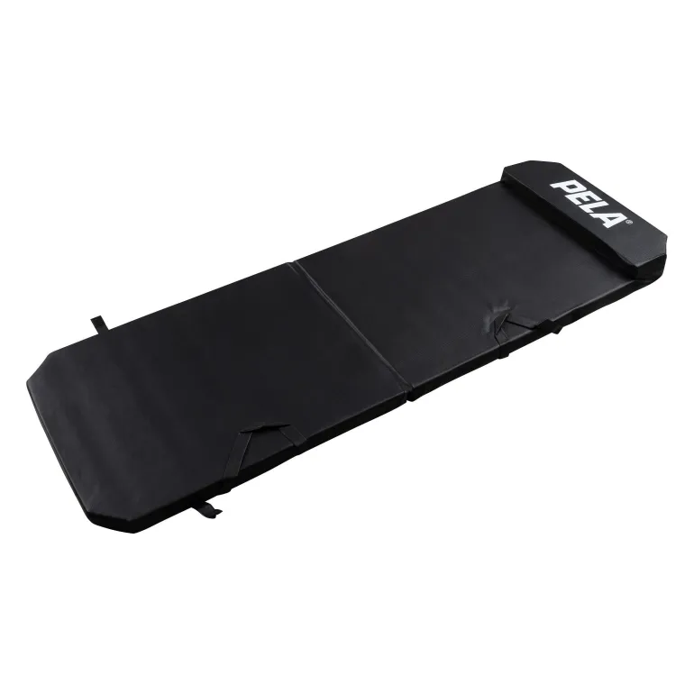 Pela 551778 on taitettava työmatto, joka sopii sekä ammattilaisille että harrastemekaanikoille, jotka työskentelevät usein auton alla tai sen ympärillä polvillaan. Vedenpitävä kangas takaa kestävyyden myös kosteissa olosuhteissa. Maton koko on 1200 x 430 x 30 mm, ja taitettuna sen paksuus on 60 mm. Kätevä kantokahva helpottaa kuljetusta, ja sisäänrakennettu niskatuki lisää mukavuutta työskenneltäessä ajoneuvojen alla.