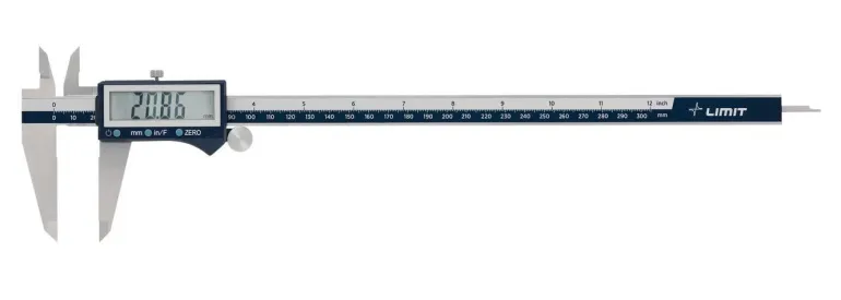 Digitaalinen työntömitta suurella LCD-näytöllä, jossa on 13 mm:n kokoiset numerot mittaustulosten nopeaa lukemista varten. Mittaa sisähalkaisijan, ulkohalkaisijan, syvyyden ja korkeuden, piirustustoiminto. Asteikko ruostumatonta terästä. Lukemat millimetreinä tai tuumina, vastenopeus 3,0 m/s, automaattinen sammutus. Absoluuttinen mittaus ja nollaus kaikissa asennoissa. Valmistettu DIN 862 -standardin mukaisesti.