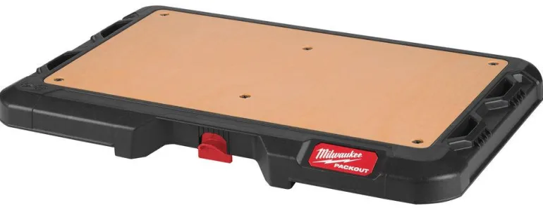 Milwaukeen kannettava työtaso, jonka koko on 650 x 380 x 60 mm ja paino 22 kg. Vanerista valmistettu, tasainen pinta helpottaa asennusta, kirjoittamista/luonnostelua tai kannettavalla tietokoneella työskentelyä. Valmistettu iskunkestävästä polymeeristä, joka kestää