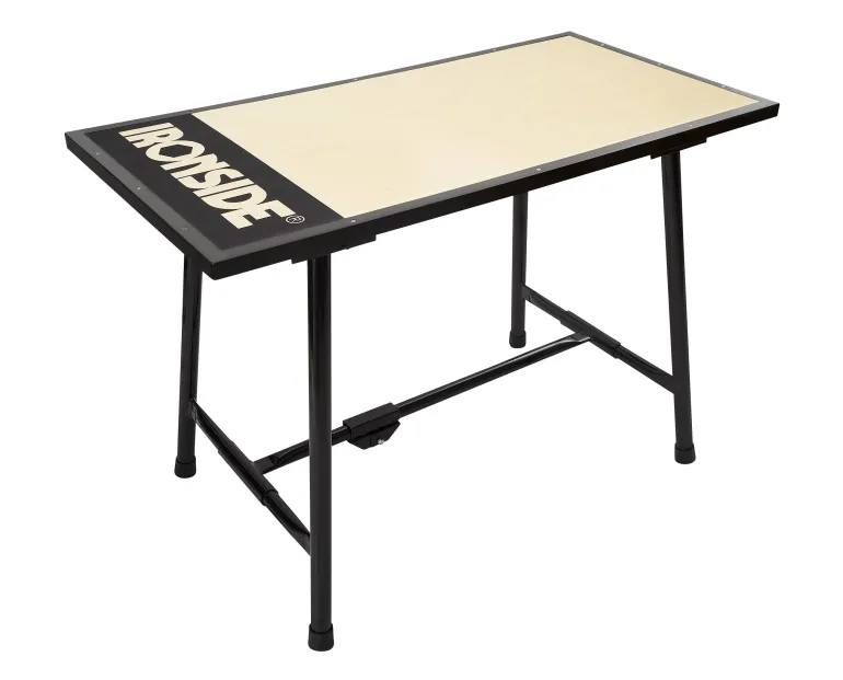 Kokoontaitettava työpöytä, 30 mm paksu puukansi laminoitua pyökkiä.