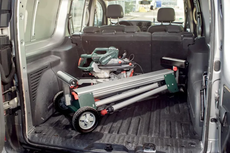 Työpöytä enintään 2,5 m pitkille laudoille. Sopii Metabon katkaisu- ja jiirisahoille.