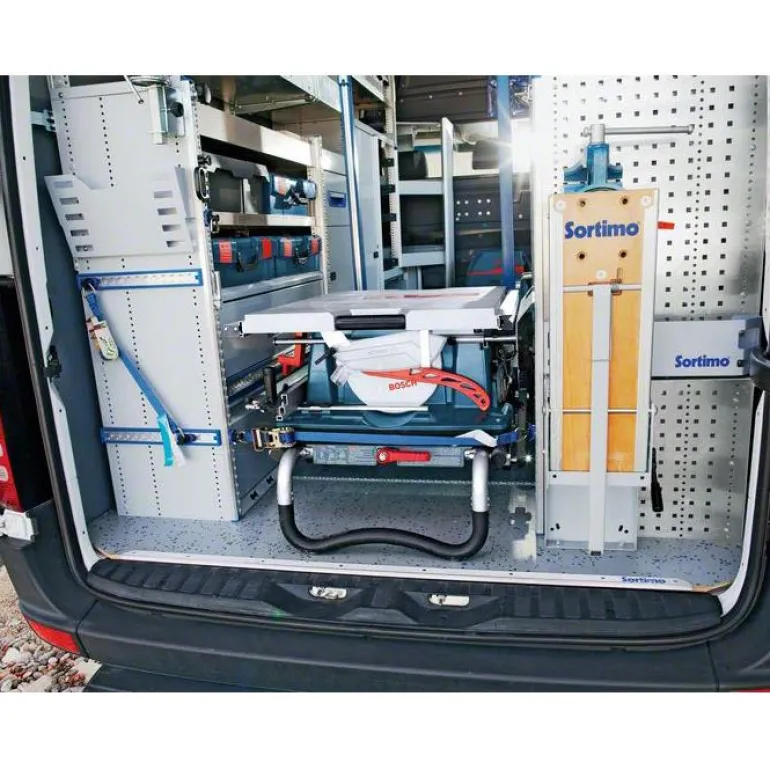 Bosch GTA 60 W Professional on kätevä työstöpöytä/kärry katkaisu- ja jiirisahoille sekä yhdistelmäsahoille. Työpöydän suurien kumipyörien avulla sahaa on helppo kuljettaa myös epätasaisella rakennustyömaalla. Lisäksi kärryn jalkoja voi säätää niin, että sen asento on aina vakaa kaikilla alustoilla.