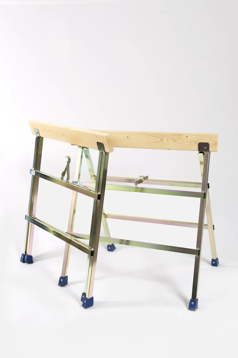 Keltaiset kromatut teräsprofiilit. Kevyt työpukki. Enimmäiskuormitus 400 kg. Paino 8 kg. Sisältää kiinnityssalvan, 28×95 mm.