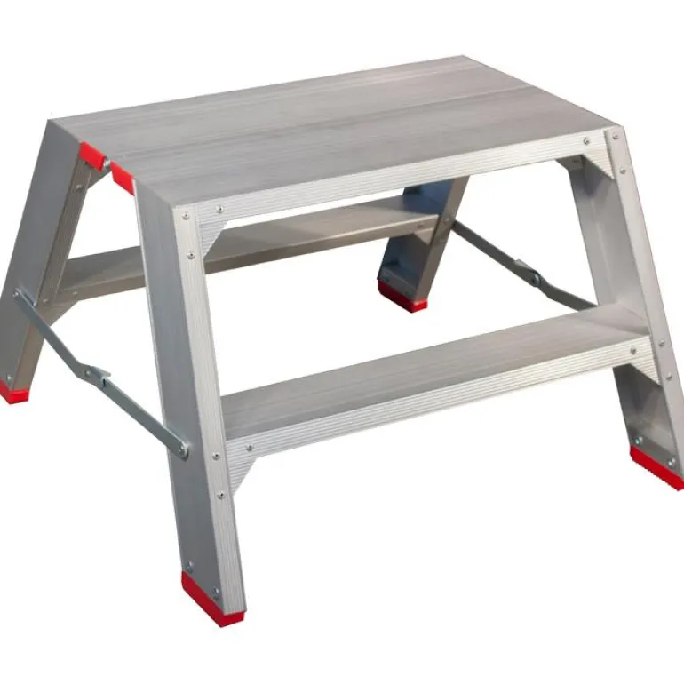 Työpukki anodisoitua alumiinia päivittäiseen ammattikäyttöön. Työpukki ei värjää anodisoidun pintansa ansiosta. Jämerät lattiasuojat ja jokaisen askelman vahvistukset tekevät siitä turvallisen työvälineen. Työskentelytaso 650 x 350 mm ja askelman syvyys 10 cm.