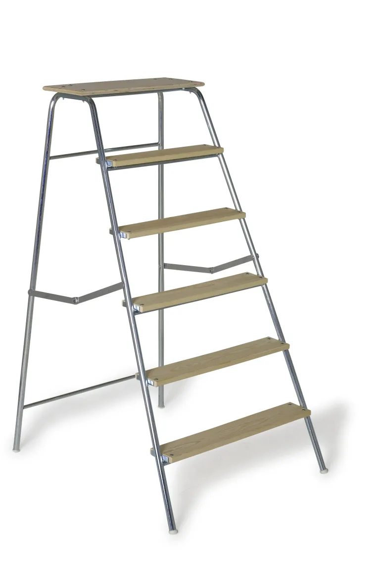 Työpukki sähkösinkityistä teräsputkista – ylin askelma on vedenpitävää vaneria. Työpukin takaosa on jyrkempi niin, että pääset lähemmäs seinää. Työpukissa, jossa on 2-5 askelmaa, ylin askelma on 750×250 mm, ja 6.-7. askelmat 620×250 mm. Kokoontaitettava.. Tyyppihyväksyntä Ruotsin työturvallisuus- ja työterveysviranomaisen määräysten AFS 2004:3 ja Ruotsin kansallisen testausviranomaisen määräysten (SPCR 064/ EN 131 osa 1 ja 2) mukaisesti.
