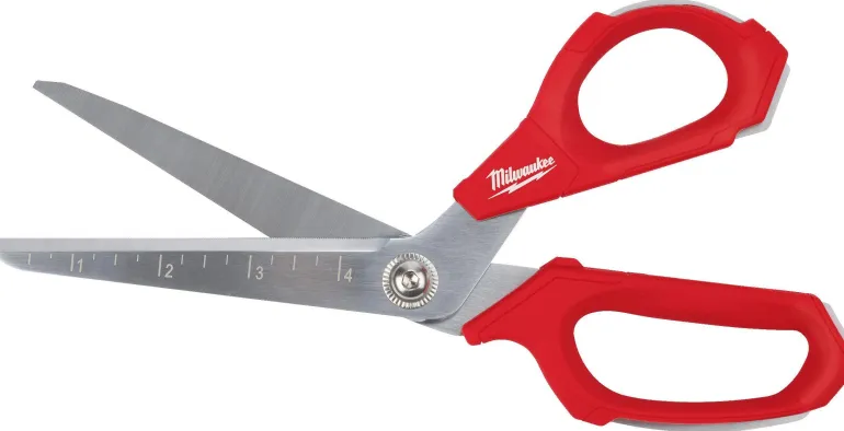 Äärimmäisen kestävät teräksestä valmistetut työsakset, joiden kromatut terät takaavat parhaan mahdollisen ruostesuojan. Kokonaan metallinen rakenne kestää putoamista ja iskuja. Lukituspultti varmistaa tarkan leikkauksen Terän viivainmerkintä mahdollistaa mittaamisen ja leikkaamisen samanaikaisesti.