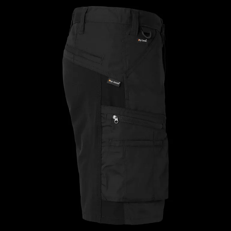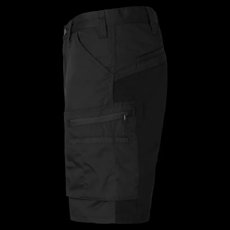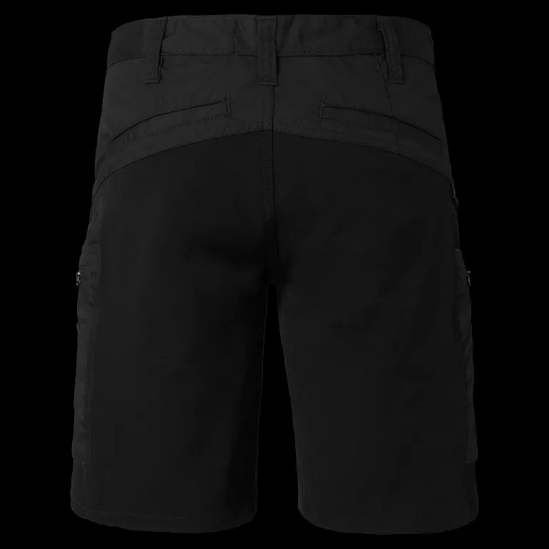 Työshortsit modernilla muotoilulla neljään suuntaan joustavaa kangasta. Kaksi etutaskua, joista toisessa on lisätasku. Kaksi palkeellista ja vetoketjullista reisitaskua, joissa on puukko- ja kynäpidikkeet. Oikeassa reisitaskussa on iso lisätasku ja puhelintasku. D-rengas. Stretchpaneelit valikoiduissa kohdissa parantavat liikkuvuutta. Takamuksessa ja haarassa stretchosiot nailonia/Spandexia. Muu kangas mekaanista stretchmateriaalia. Päämateriaali: 65 % polyesteriä, 35 % puuvillaa, 180 g/m². Joustomateriaali: 94 % nailonia, 6 % Spandexia, 230 g/m². Pesuohjeet: Konepesu 60 °C.