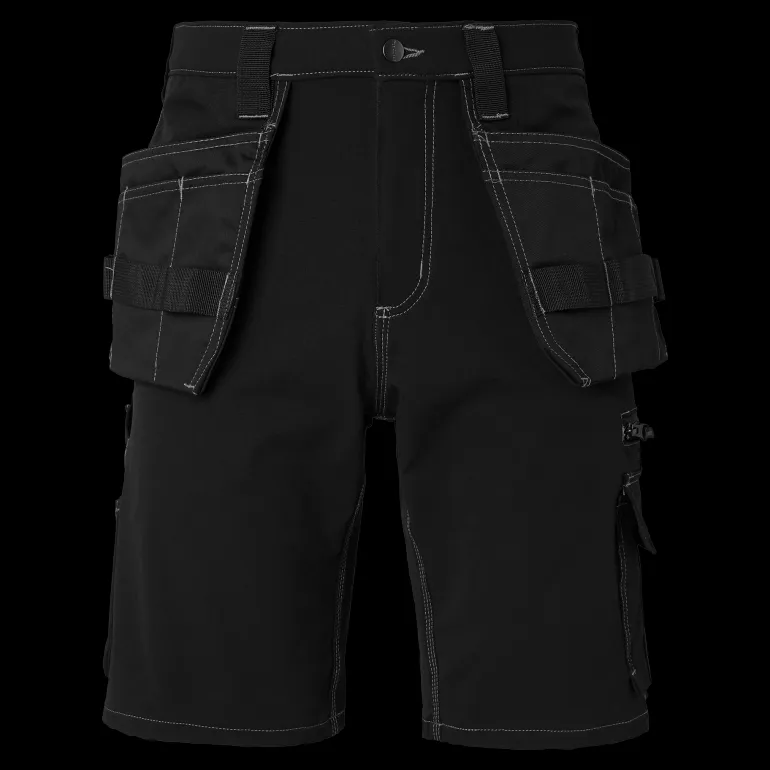Työshortsit modernilla muotoilulla neljään suuntaan joustavaa kangasta. Kaksi etutaskua ja kaksi vahvistettua palkeellista takataskua. Riipputaskut Cordura®-vahvikkeilla.